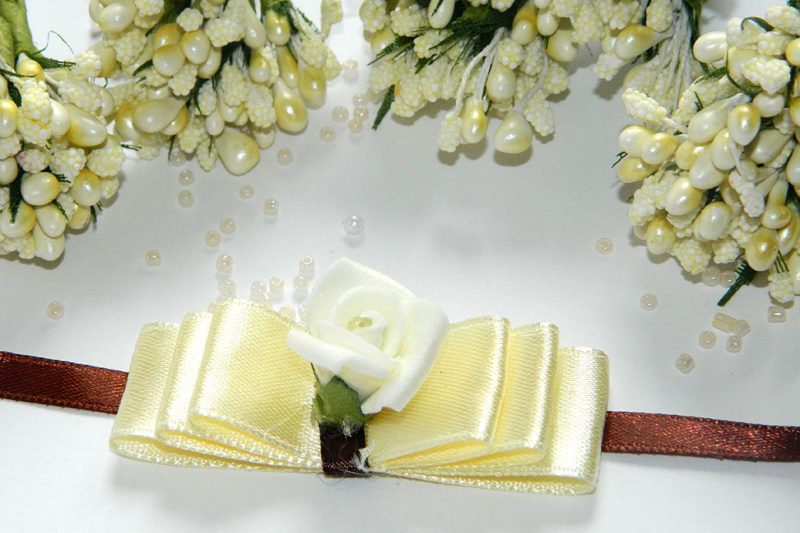 Cvetic narukvice od  satenske trake sa ruzicom.