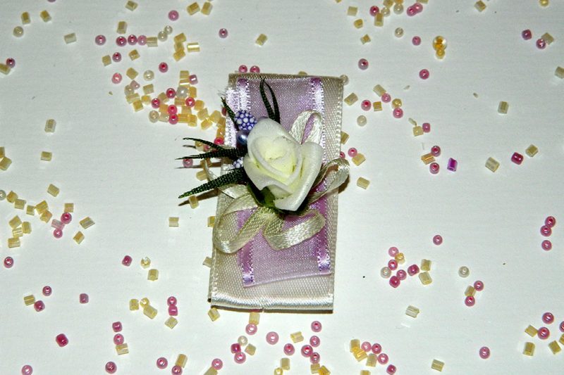 Cvetic narukvica od satenske i organdin trake sa ruzicom i ledenom bobicom.