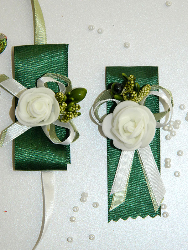 Cvetic narukvica od satenske trake sa ruzicom i ledenom bobicom.