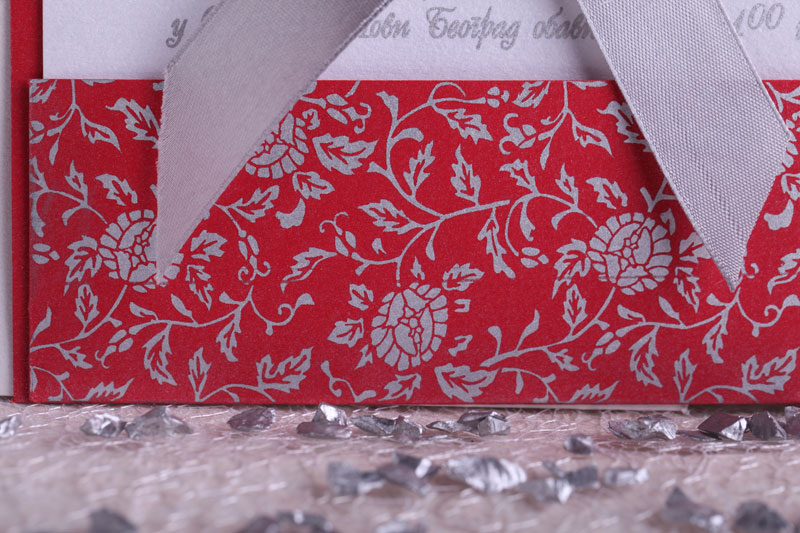 Pozivnica i koverta su od sedefastog papira, mašna.