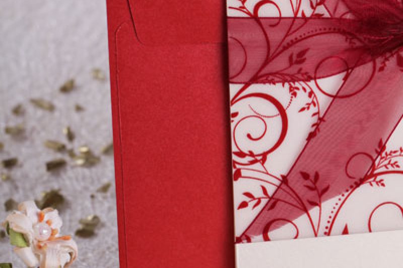 Pozivnica i koverta su od sedefastog papira, paus sa šarom i mašna.